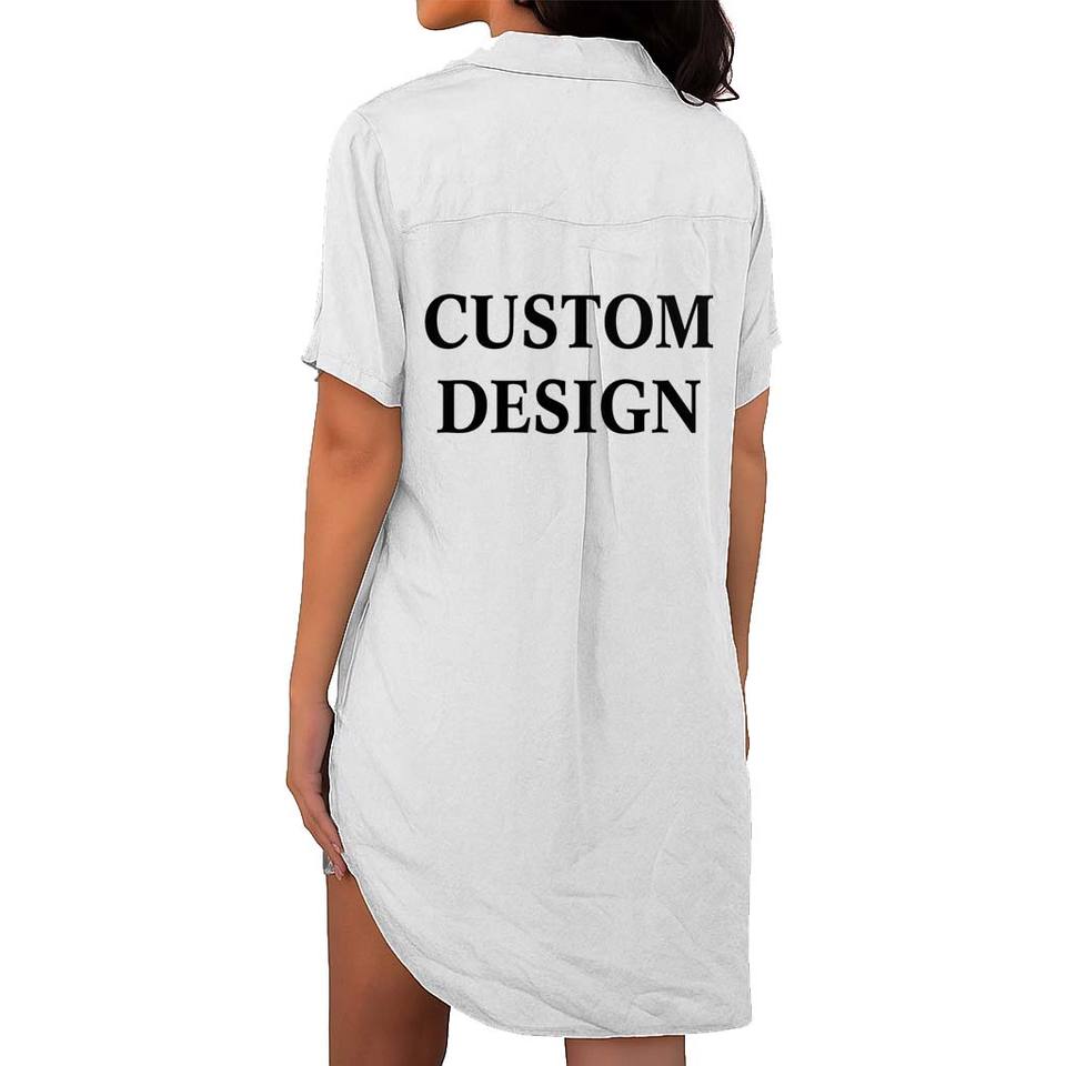 On Sale Turn Down Collar Pocket Knee Length Casual Women's Dresses Custom Hawaiian Island Core Shell Design Women's Dress Shirt
