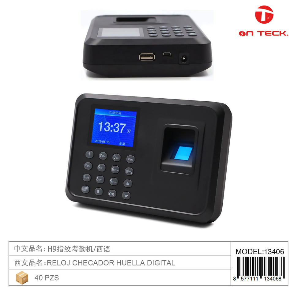 Orologio Marcatempo con Impronta Digitale On Teck 13406 Versione Spagnola, Resistente per Uso Ufficio