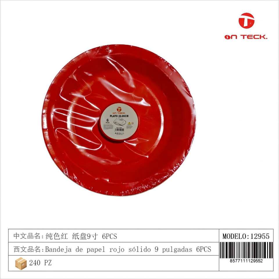 Piatti di Carta Rossi On Teck Sa De Cv da 9 Pollici, 6 Pezzi, Rotondi, Monouso, in Carta Alimentare Rivestita, per Feste e Tavola