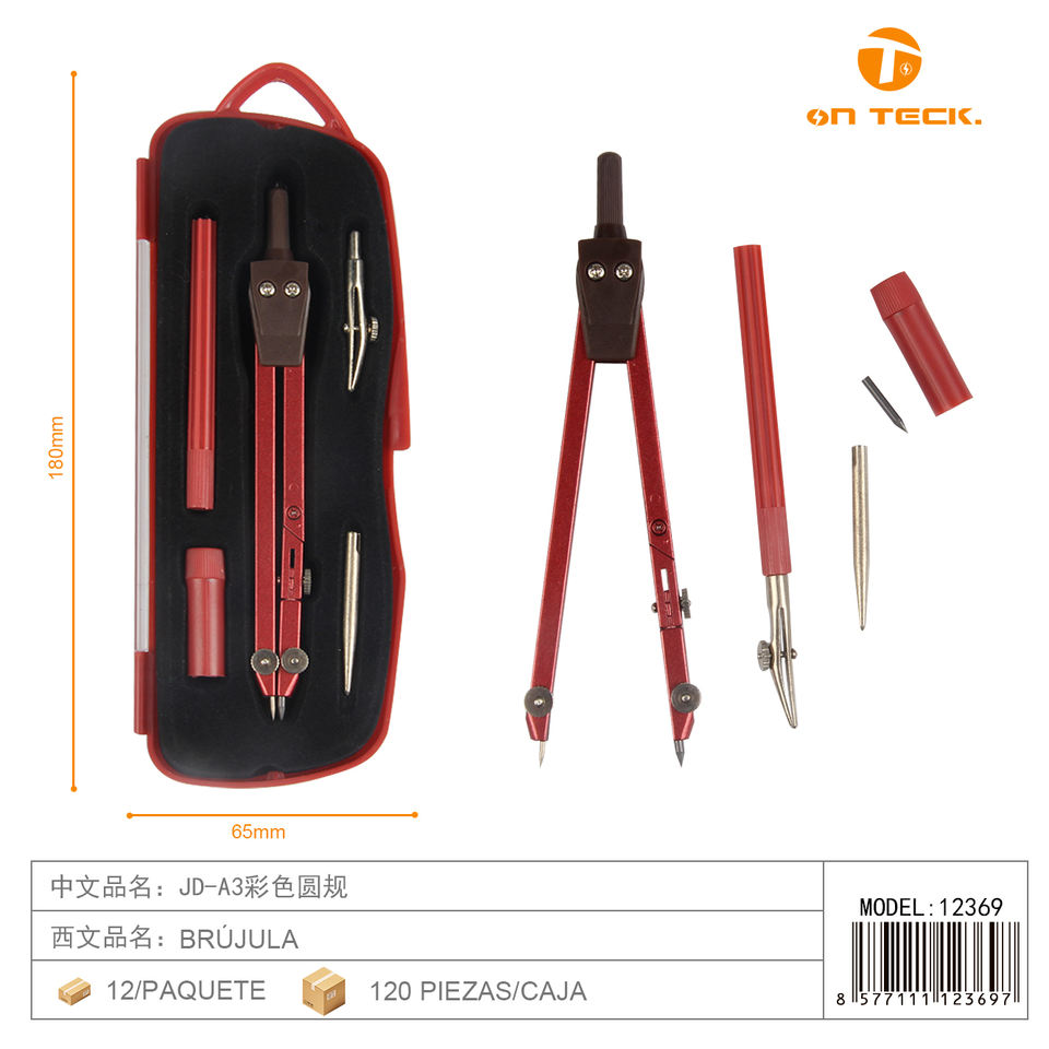 Set di Strumenti per Disegno Tecnico On Teck Sa De Cv JD-A3 con Compasso in Metallo 12369, Durevole e Portatile