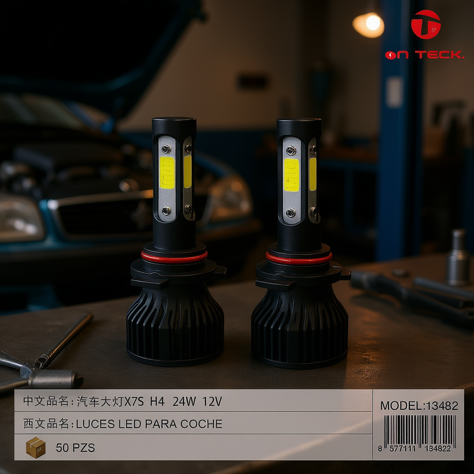 Faro per Auto On Teck X7S H4 60W 12V LED, Illuminazione Automobilistica 6500K, Universale, Nuovo, 8000 Lumen