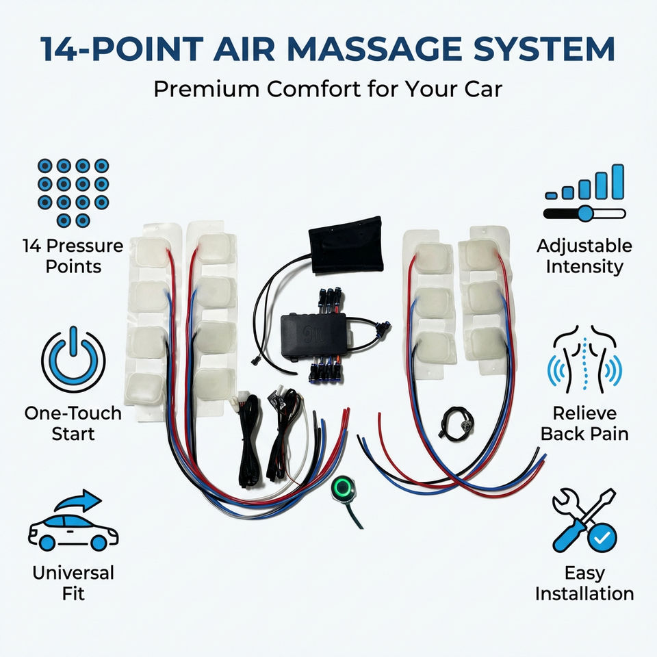 Cuscino Massaggiante per Sedile Auto con Avvio a un Tasto, 14 Punti di Massaggio e Luce LED, Accessorio Universale per Interni Auto