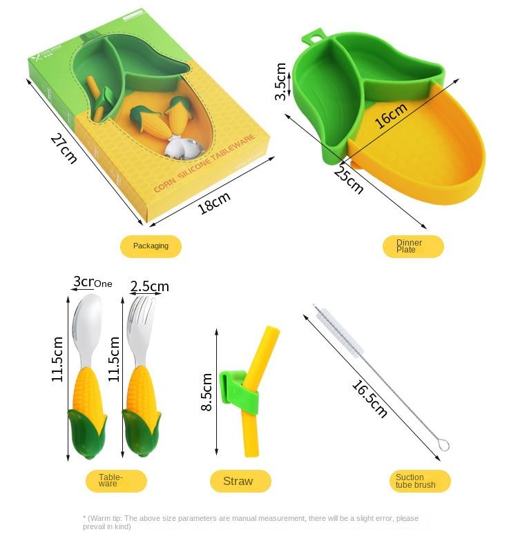One-Piece Split Silicone Flatware Creative Children's Cartoon Baby Suction Cup Supplementary Flatware Suit Food