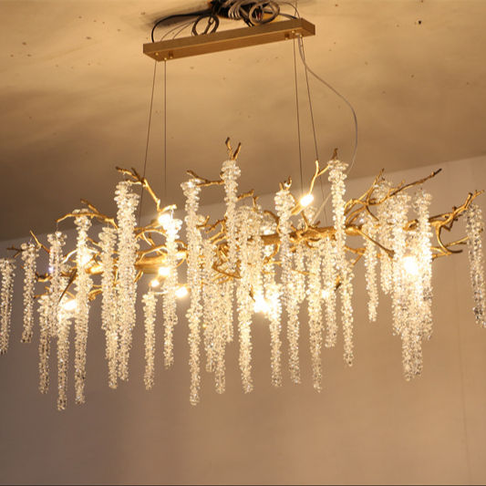 One Piece of Modern Light Luxury Crystal Chandelier for Dining Room Bedroom Brass Branch Grape Grain Chandeliers