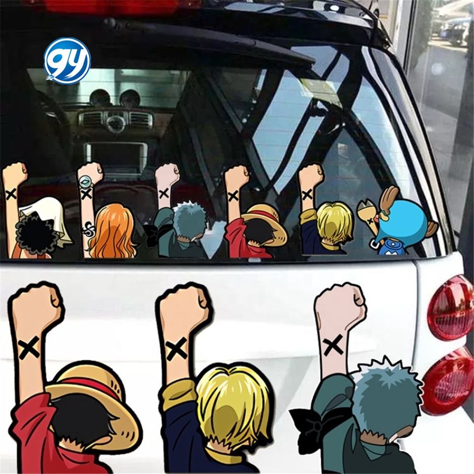 GY Ganyuan Adesivo auto in PVC mod.5123 One Piece – Luffy, Zoro, Sanji; copri graffi, taglia unica; fustellato lucido