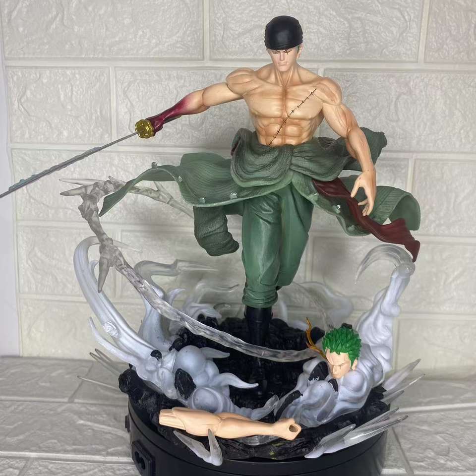 Un pezzo Action Figure 28cm Roronoa Zoro tremila mondi su larga scala statua GK doppia testa scolpt con Asura demone Eye