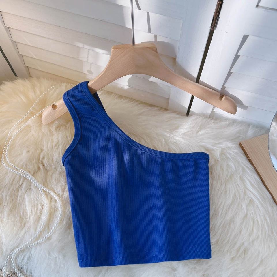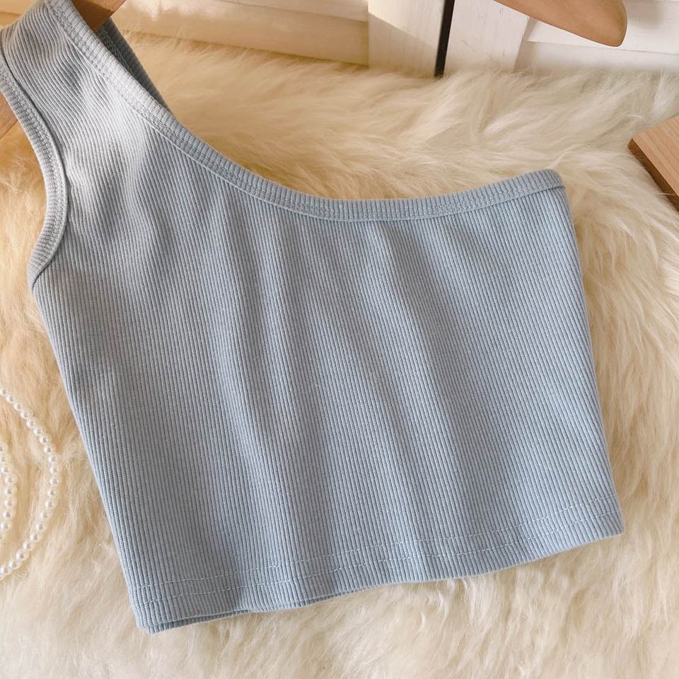 Una spalla Crop Top donna canotta a coste Sexy Tube Basic White Plain Tank Top