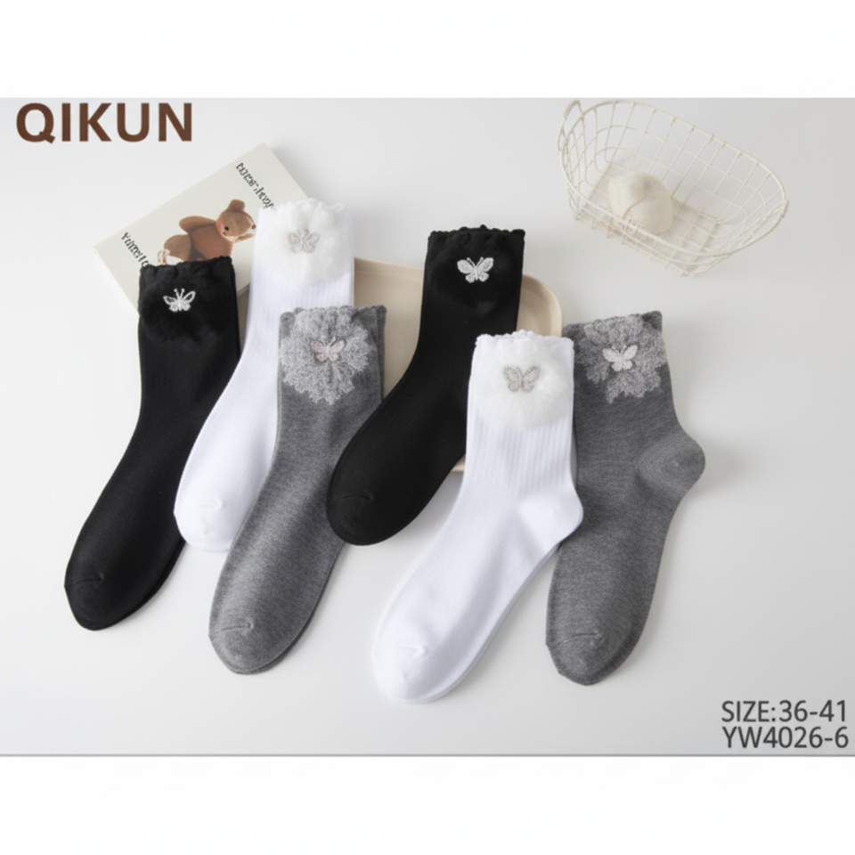 Calze ornamentali da ragazza carina taglia unica con ricamo morbido e traspirante con stampa di cartoni animati Logo personalizzato caldo caldo per la primavera