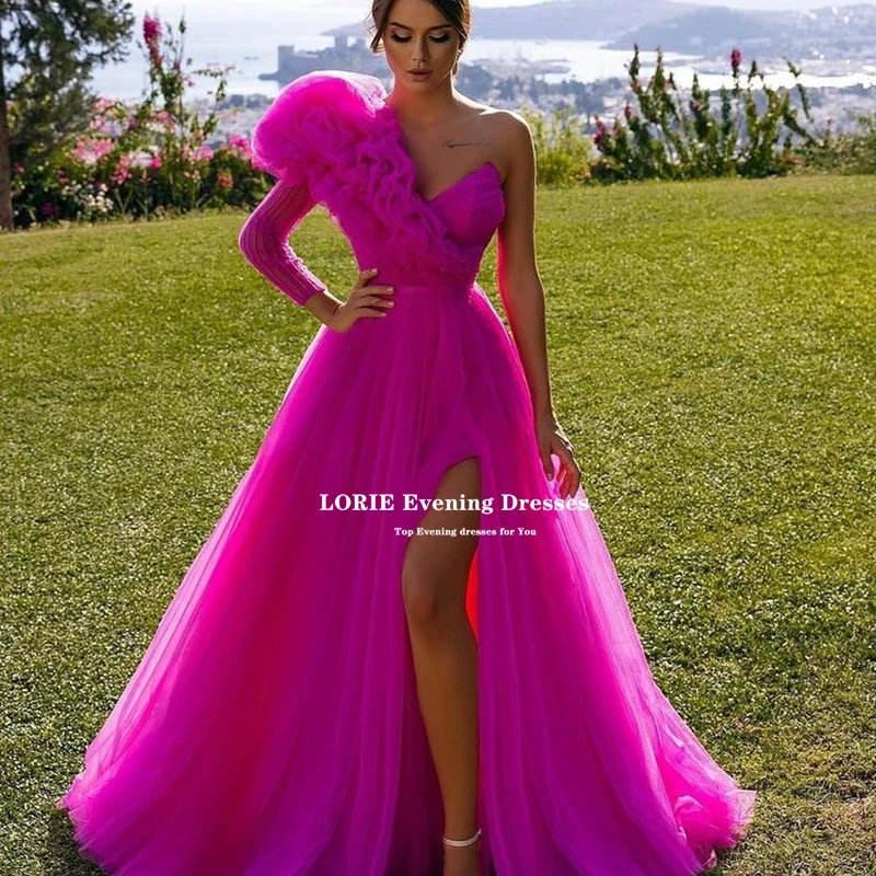 Abito da sera di lusso monospalla con scollo a V, linea ad A, lunghezza al pavimento, stile vintage, con spacco laterale, ideale per balli di fine anno e matrimoni