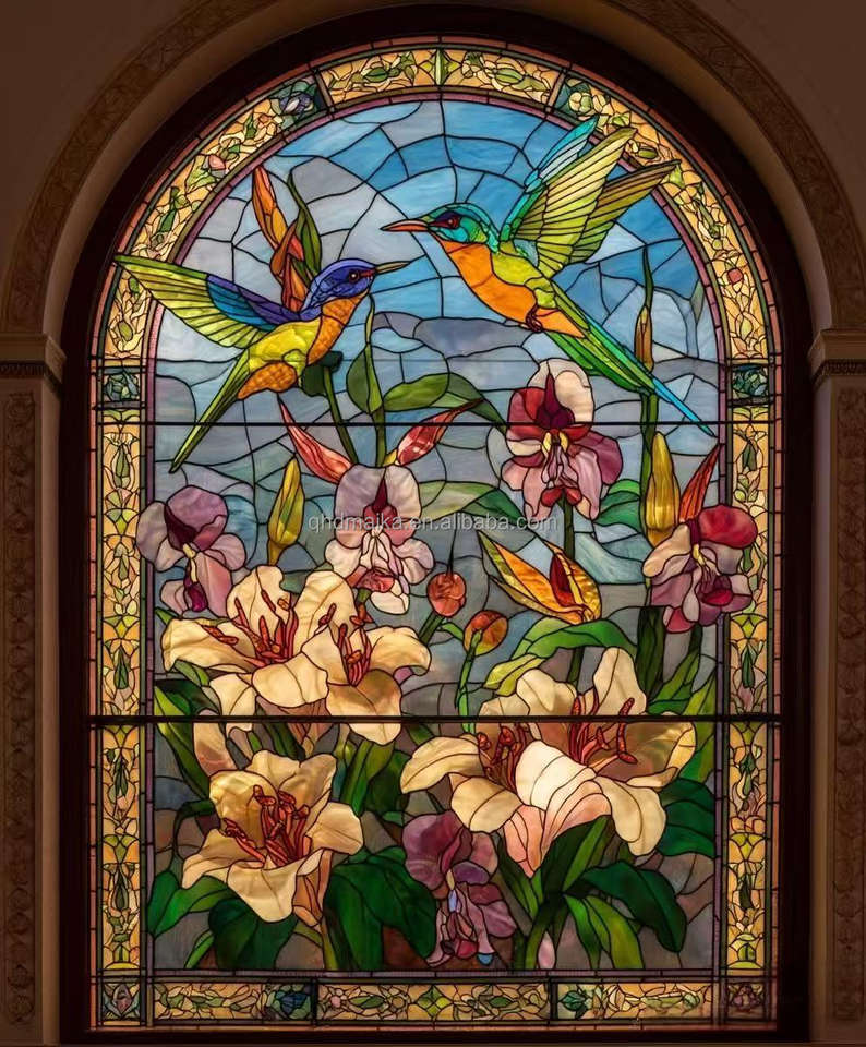Una finestra di vetro colorato colibrì 30-40 cm incorniciato multicolore pellicola per finestra trasparente vetrata in vinile autoadesivo