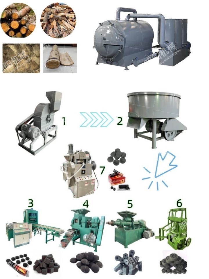 Legno legno tronchi di bambù guscio di cocco produzione di carbone