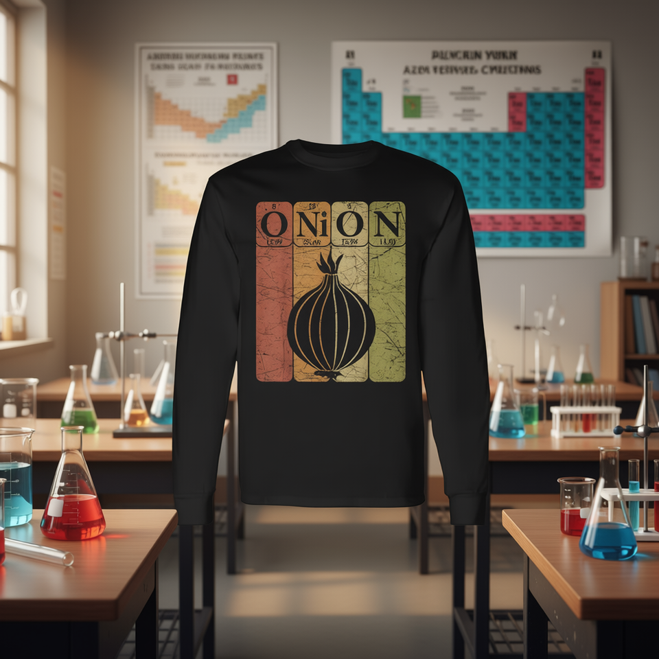 T-shirt a maniche lunghe con elementi della tavola periodica Onion, girocollo unisex, abbigliamento promozionale per adulti