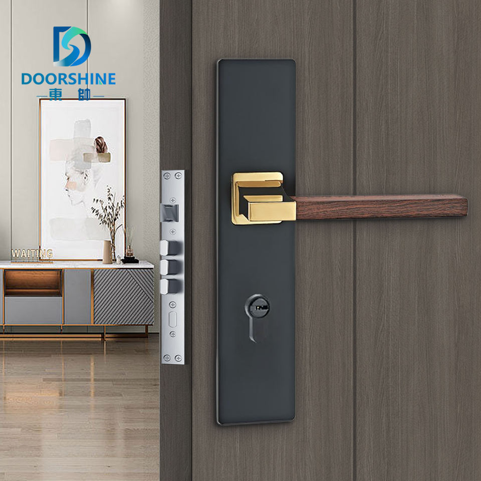 Online Luxury Aluminum Zinc Alloy Brass Manija De Puerta Madera Key Lock Panel Set for Home Privacy Interior Lever Door Handles