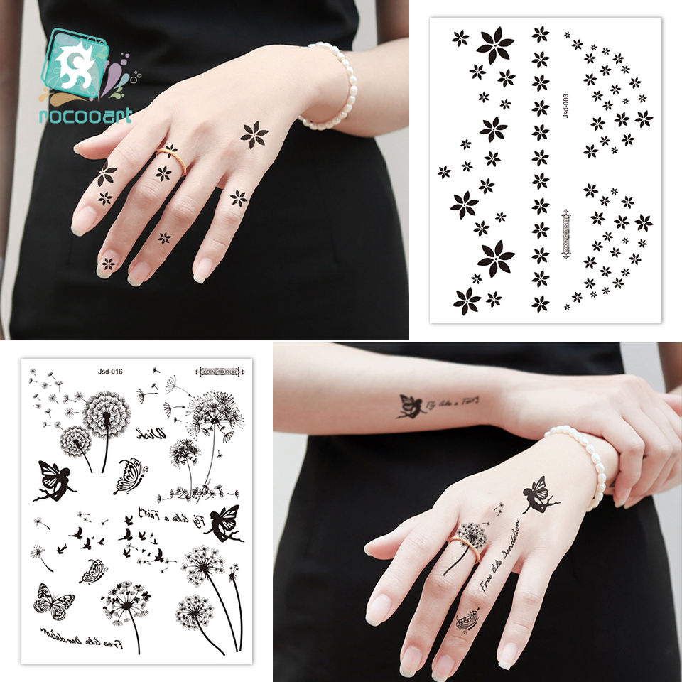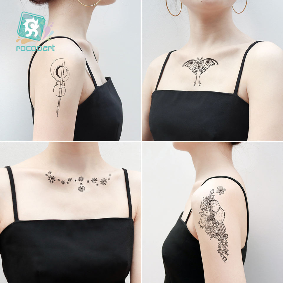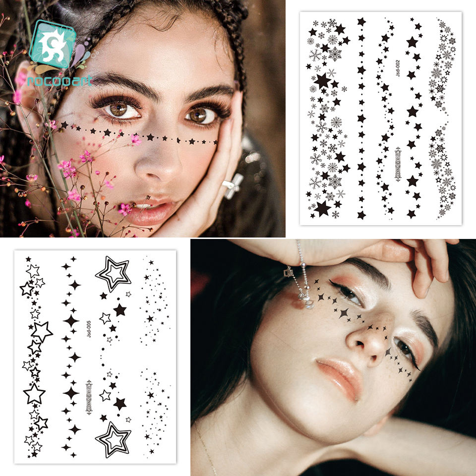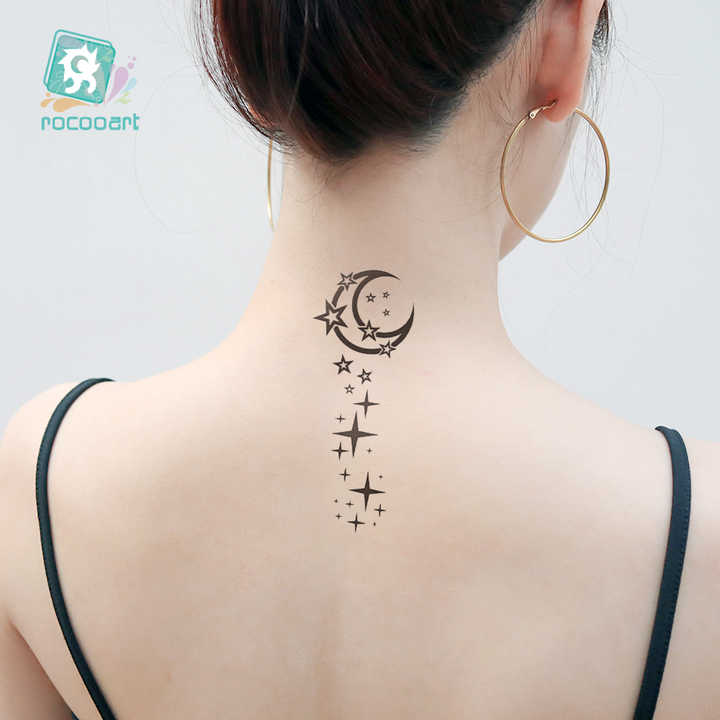 Online Shop Rocooart Henna Inspired Temporary Makeup Tattoos Flower Leaf Moon Star Tattoo Designs Black Temporary Tattoo on Neck