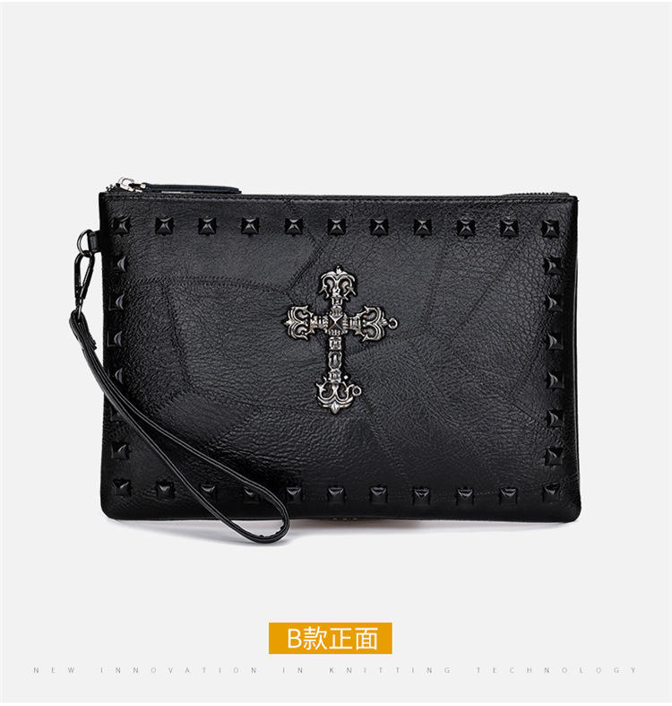 Solo 100 borsa a mano da uomo in PU di qualità a sinistra con decorazione a bullone in metallo con teschio, custodia da uomo portatile di grandi dimensioni