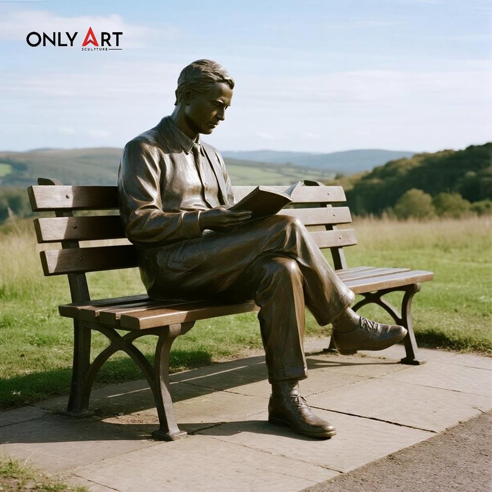 Onlyart Statua Personalizzata a Grandezza Naturale di Uomo che Legge in Bronzo da Esterno Scultura di Uomo Seduto su Panchina per Arredo Urbano
