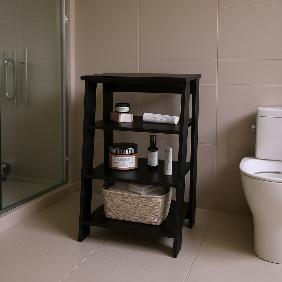Scaffale da Bagno Indipendente McNeal Open Storage a 3 Ripiani in Legno Minimalista Nero Salvaspazio
