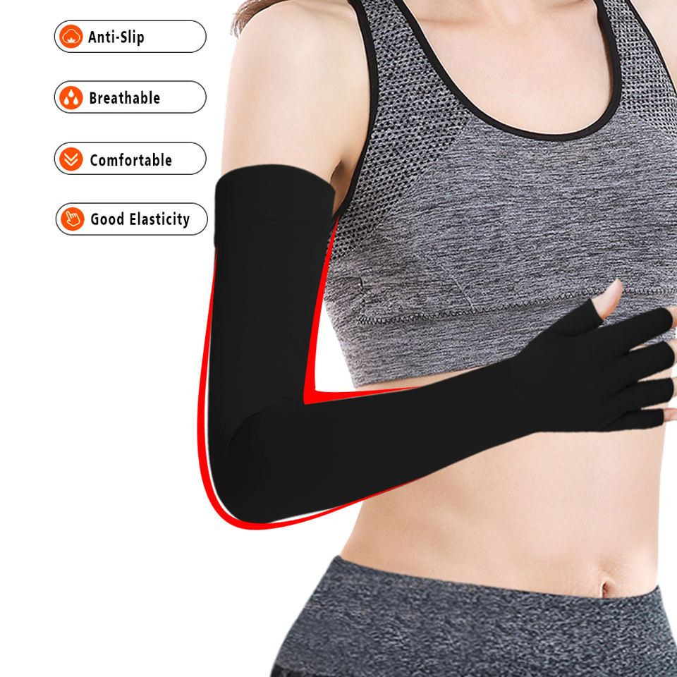 Manicotti a compressione per braccia a punta aperta, traspiranti, unisex, a pressione graduata, per sollievo dal linfedema e uso multisport