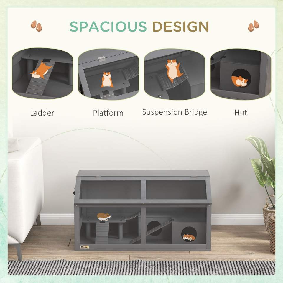 Gabbia per Ratti con Tetto Apribile, Casetta per Criceti con Ponte Sospeso e Scale, Gabbia per Piccoli Animali per Gerbilli