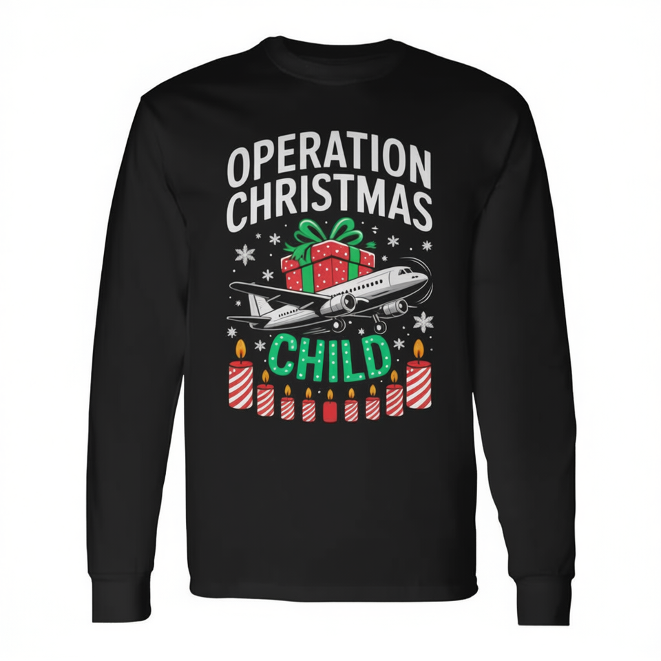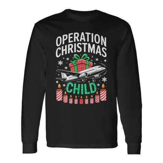 T-shirt a maniche lunghe Operation Christmas Child, camicia natalizia coordinata per la famiglia