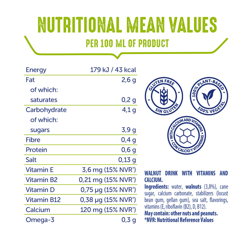 OraSi Plant-Based Walnut Drink 100% Italian 1 Liter for Packaging 365 Days Shelf Life 12 Units