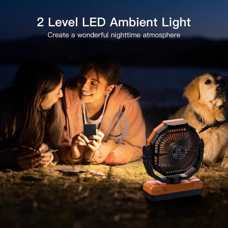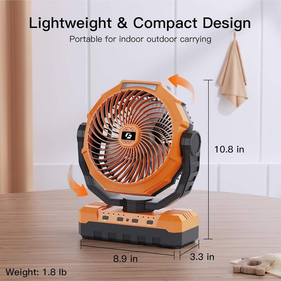 Orange 9-Inch Portable USB Rechargeable Fan 12000mAh Battery 4 Speed Settings Reverse Charging Function for Home Office Outdoor