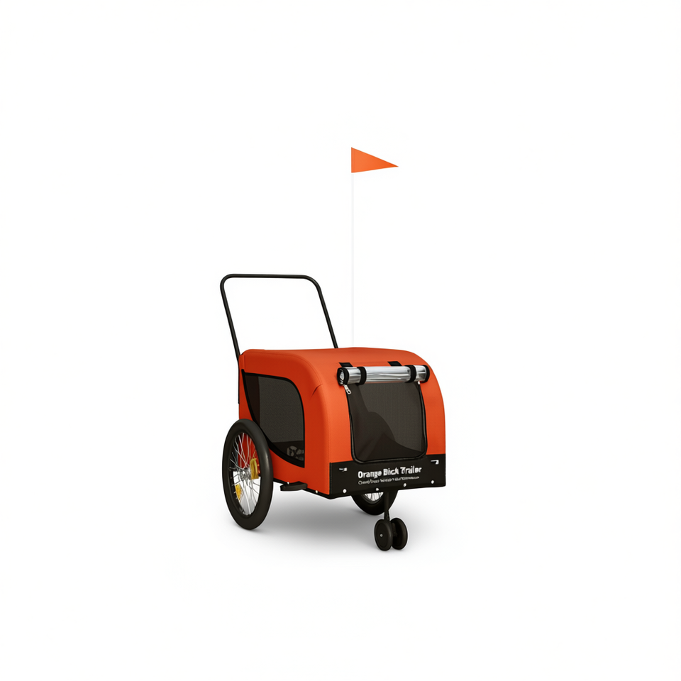 Orange Black Pet Bike Trailer Durable Oxford Fabric Iron Outdoor Adventure Carrier