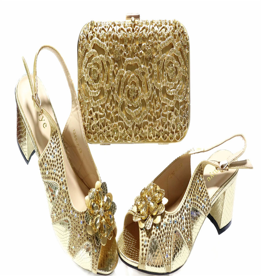 Scarpe con tacco basso di colore arancione con borse abbinate Set di borse da donna per feste africane