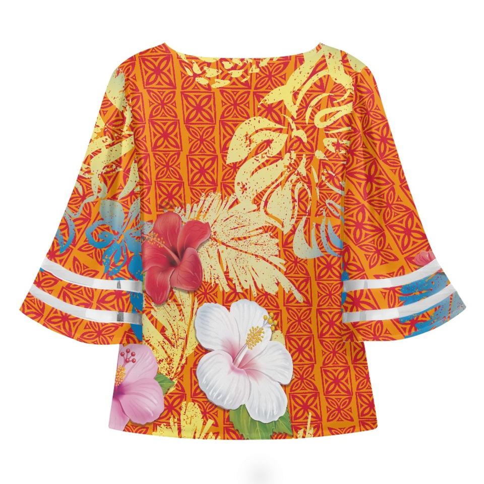Orange Custom Printed Hawaiian Shirt Tapa Tropical Monstera Leaf Elegant Ladies Chiffon Blouse Vintage Women's Tops and Blouses