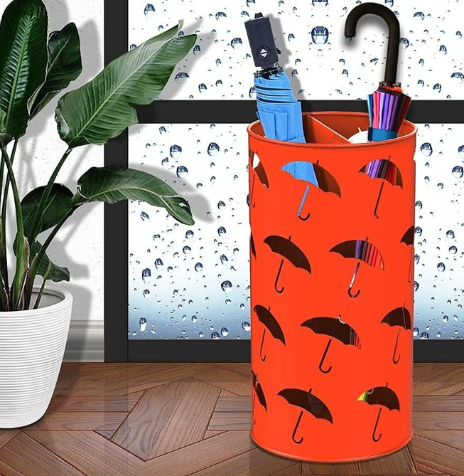 Portachiavi Moderno in Ferro Arancione con Tracolla, Portafoto e Portaombrelli con Serratura per Ingresso Casa