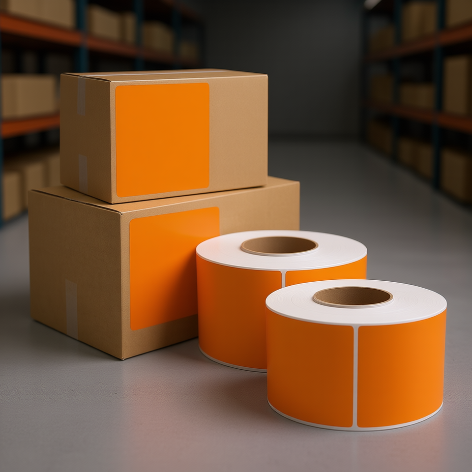 Orange Direct Thermal Label Paper 4 X 6 Inches Self Adhesive Rolls For Packaging Labels 4000 Pack