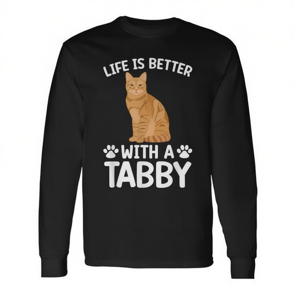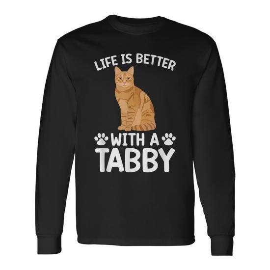 T-shirt a maniche lunghe per amanti dei gatti tabby arancioni con grafica di gatti per i proprietari di gatti