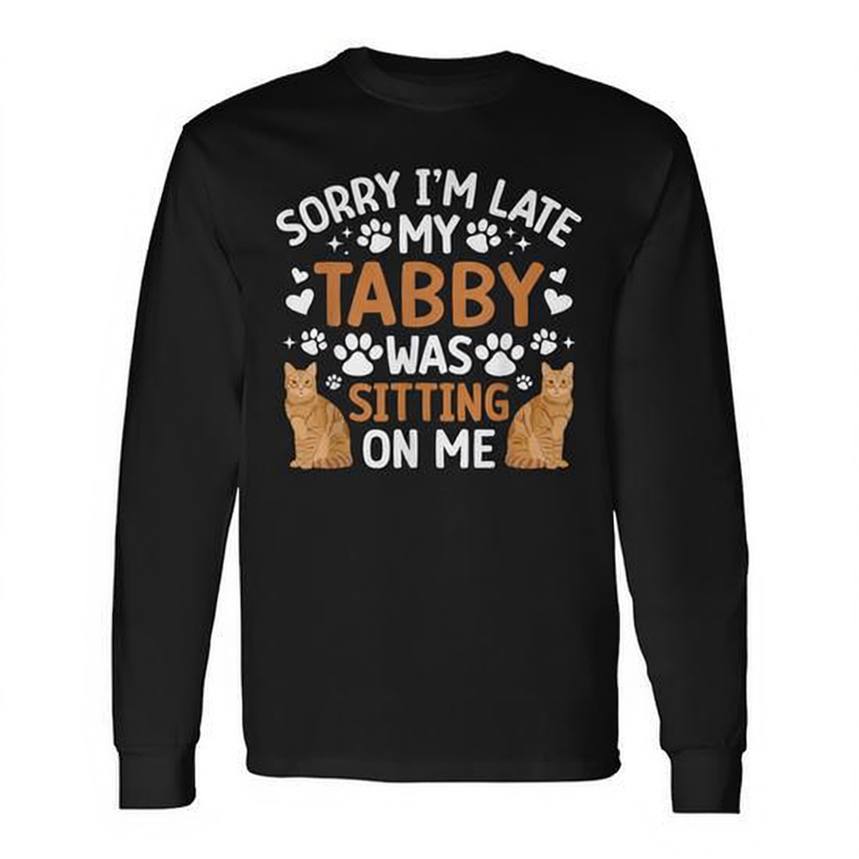 T-shirt a maniche lunghe per amanti dei gatti con stampa divertente di un gatto tabby arancione