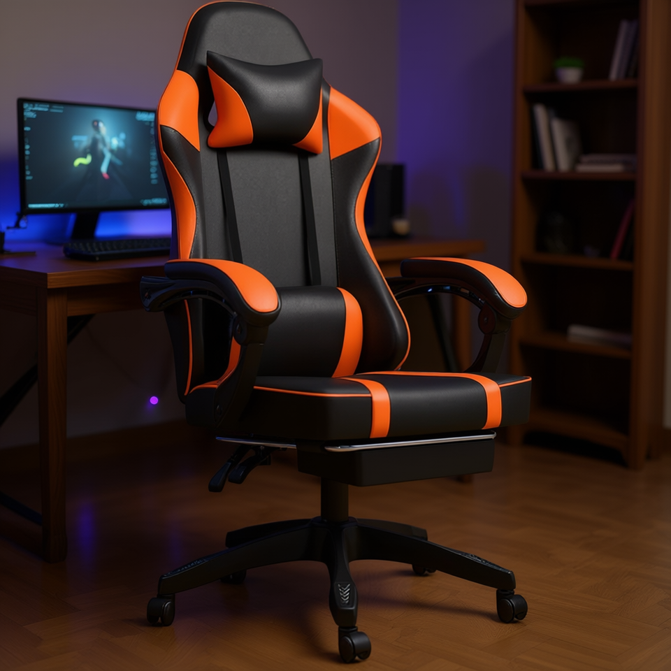 Orange Gaming Chair PU Leather 360 Swivel Lumbar Pillow Computer Chair with Footrest for Adults