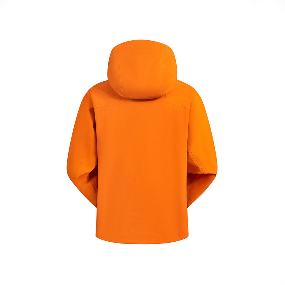 Orange Waterproof Woven Zipper Hooded Hard Shell Mountaineering Jacket for Unisex Outdoor Hiking Windproof Climbing Coat