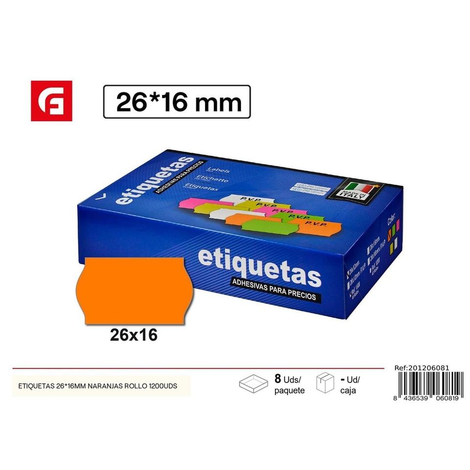 Orange labels 26*16mm roll 1200 pcs - Self-adhesive labels