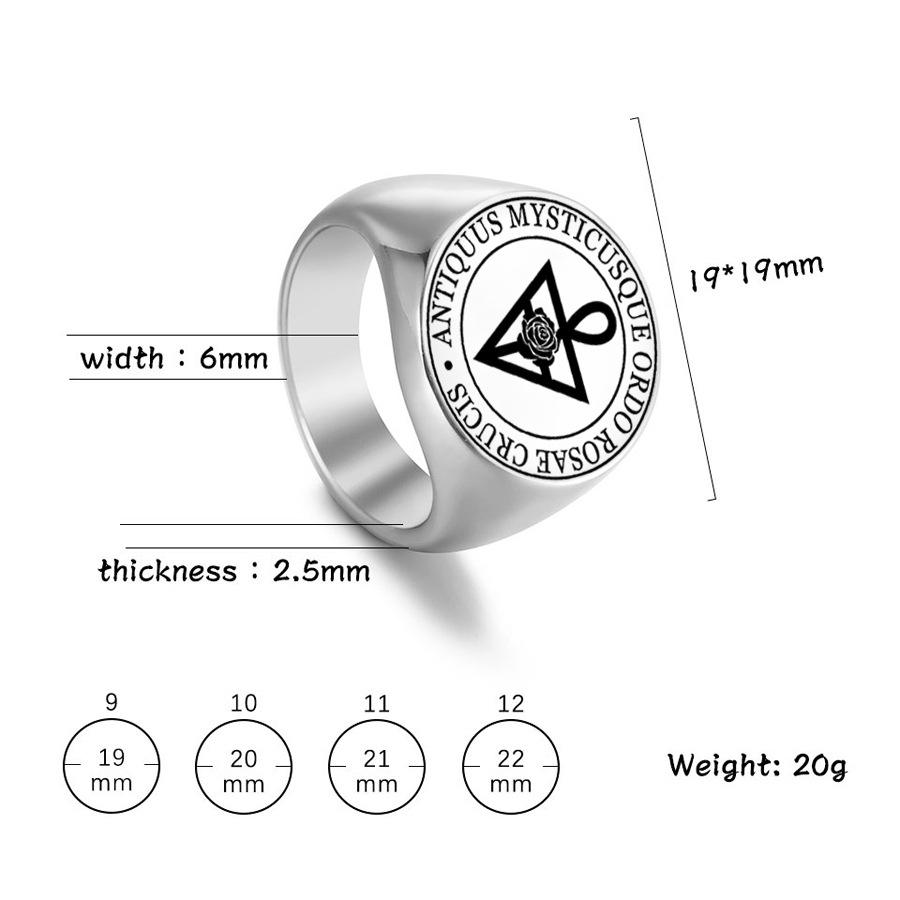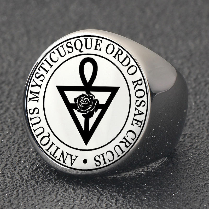 Anello Ordine della Croce Rosa AMORC, Ordo Rosae Crucis Antiquus Mysticusque, Amuleto Talismano, Anelli in Acciaio Inox Tagliati al Laser