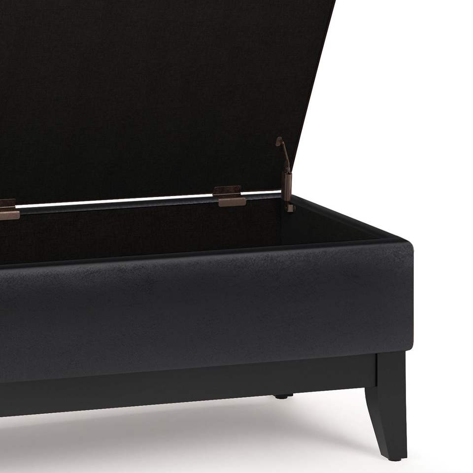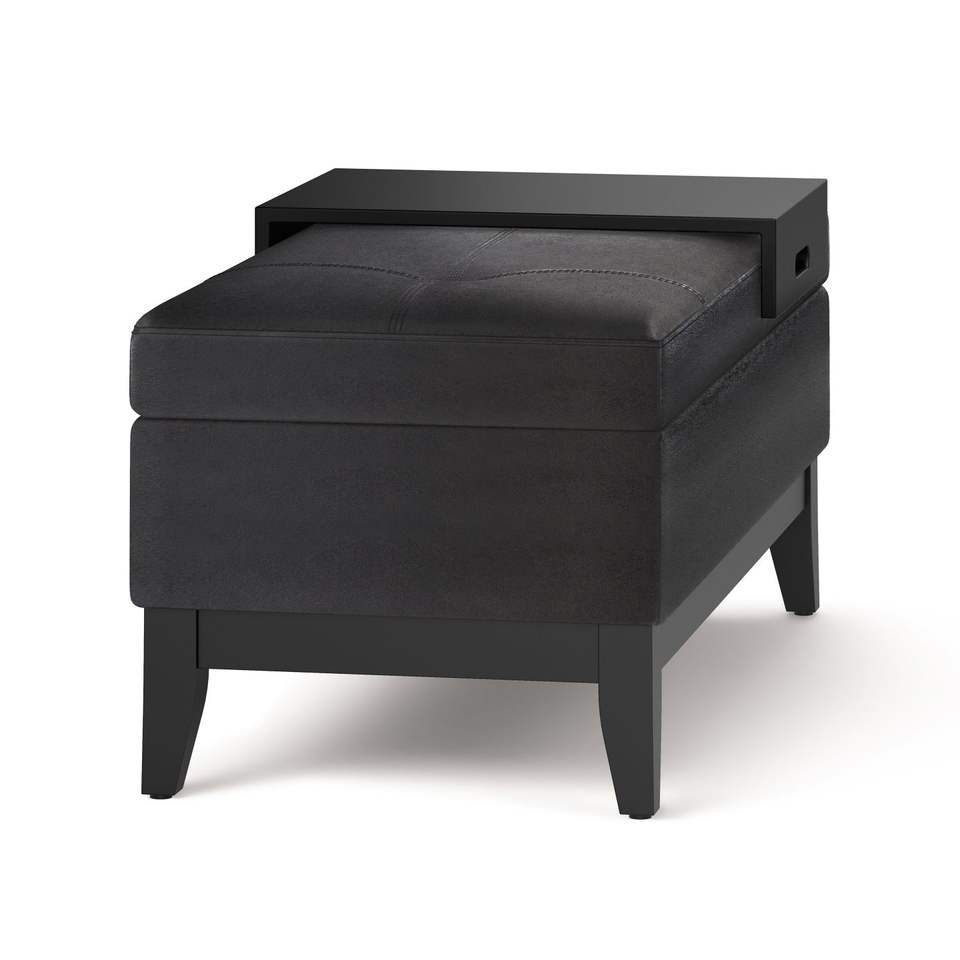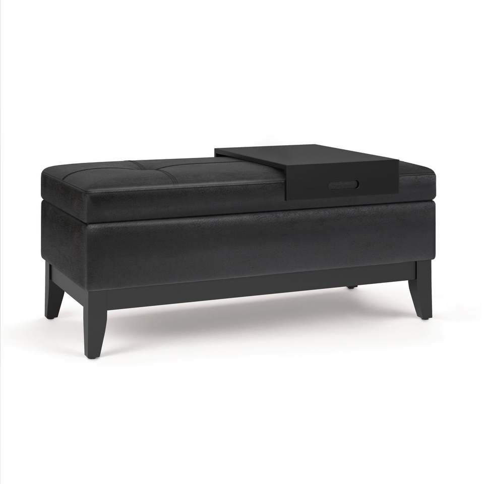 Oregon Distressed Black Storage Ottoman Bench with Tray Elegant Stools & Ottomans