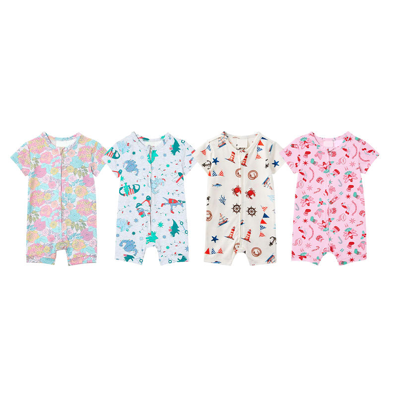Tutine per Neonati in Bambù Organico, Pigiama a Maniche Corte, Abbigliamento Ecologico per Bambini, Tutina con Cerniera per Neonati