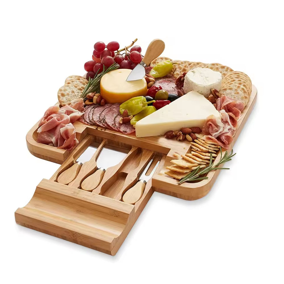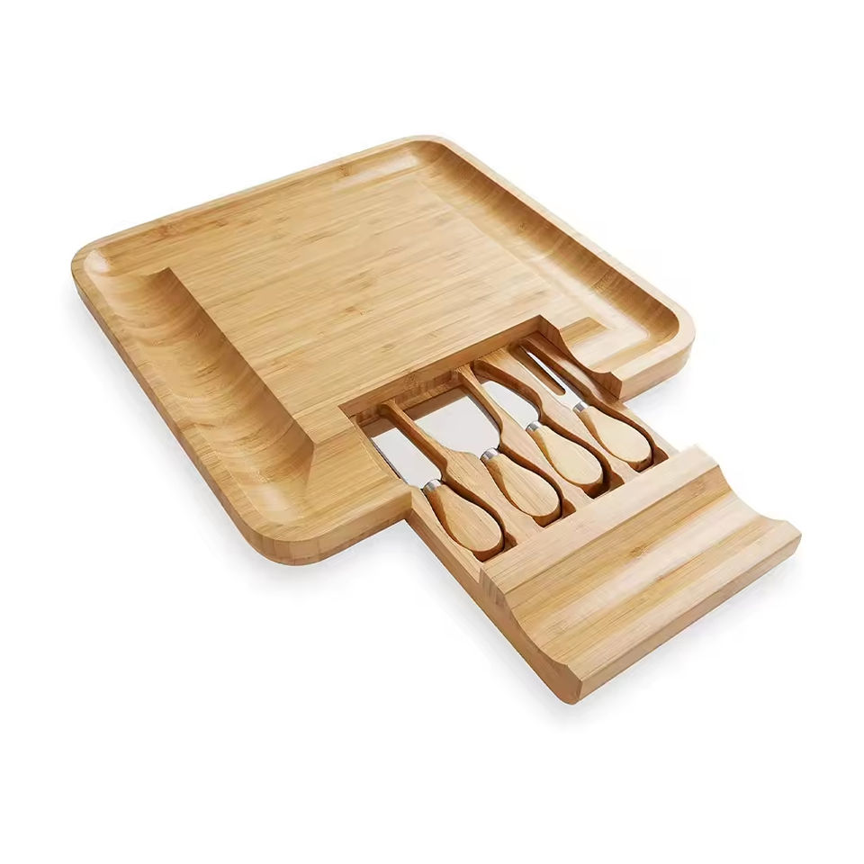 Organic Bamboo Cheese Chopping Board and Cutter Gift Set Picnic Cheese Board