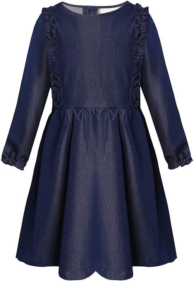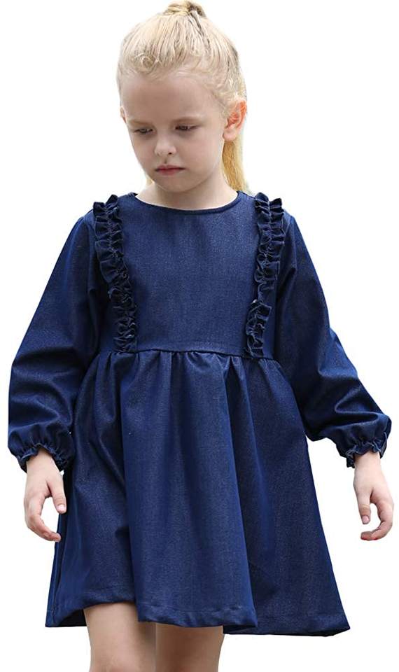 Organic Cotton Girls Dress for Fall Long Sleeve Denim Jean With Ruffle Comfortable and Stylish Children's Clothing