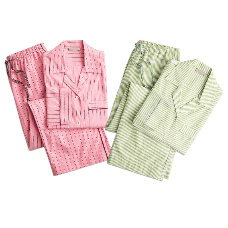 Organic Cotton Women's Sleepwear Womens Pajama's Long-sleeve Pajama Pant Set in Striped Cotton Poplin Women Clothes Lounge Sets