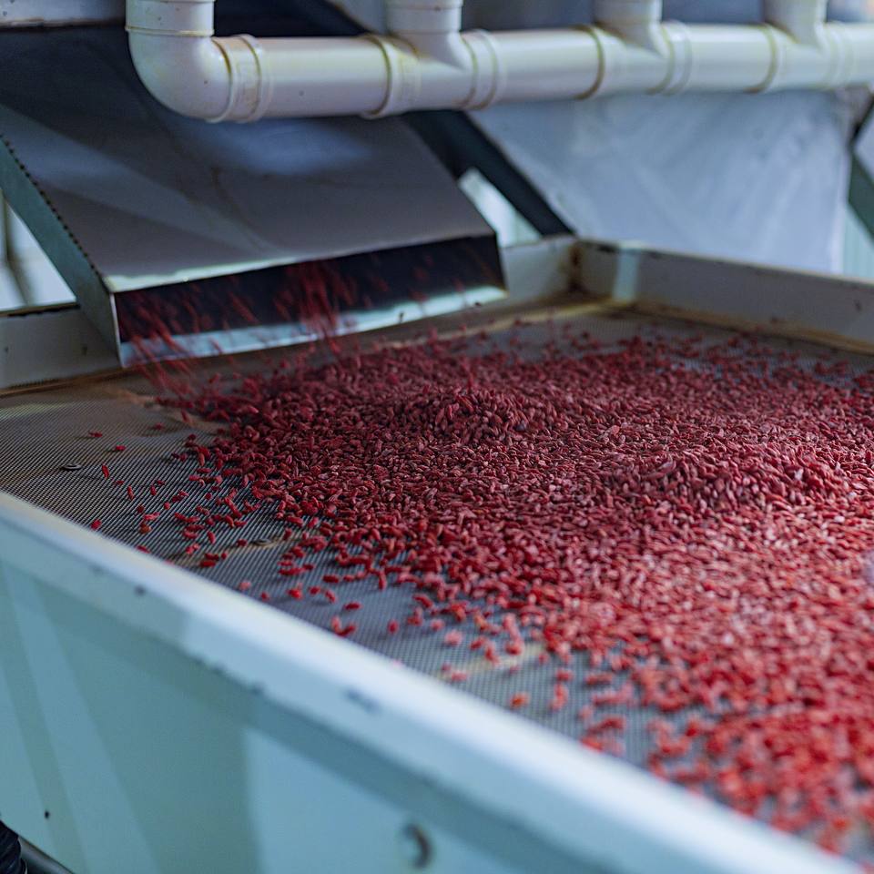 Bacche di Goji Biologiche Fresche dallo Ningxia, Cina, Sono Frutta Secca Salutare che Possono Essere Utilizzate per Preparare Tè o Mangiate Come Spuntino.