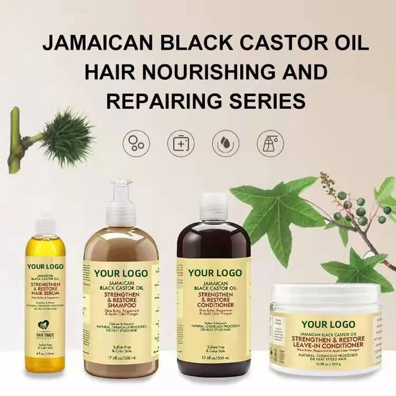 Organic Jamaican Black Castor Oil Shampoo Hair Mask Set-Anti-Dandruff Smoothing Fluffy Repair for Dry Long Hair 5-Piece Unisex