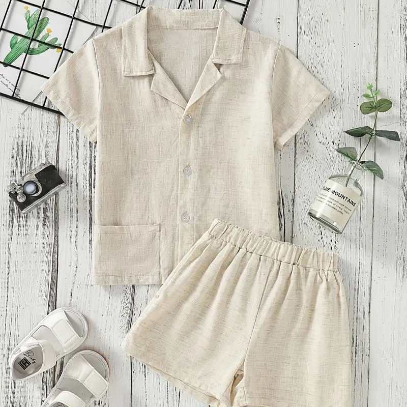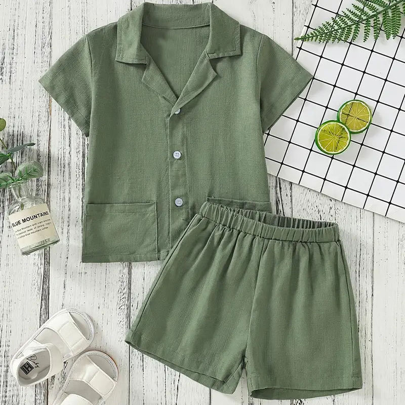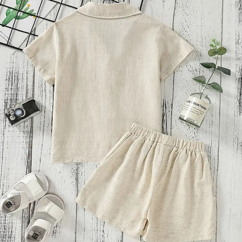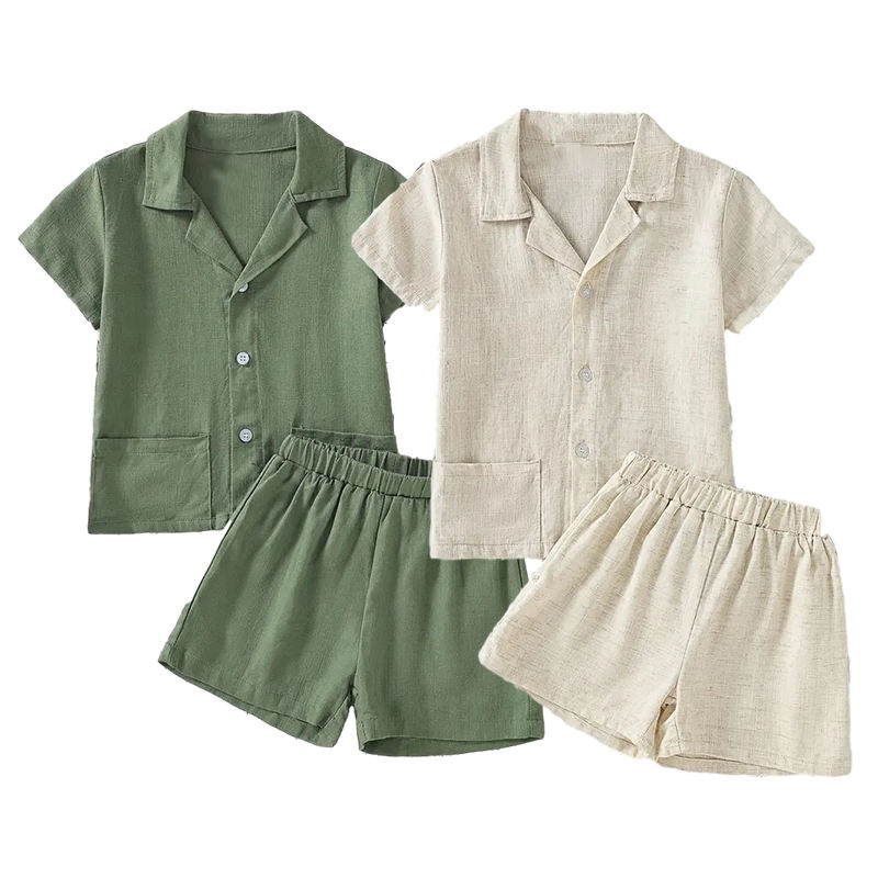 Set in Lino Biologico per Bambini, Completi Personalizzati per Ragazzi, Set con Bottoni in Lino, Camicie e Pantaloncini per Bambini, Abbigliamento per Bambini