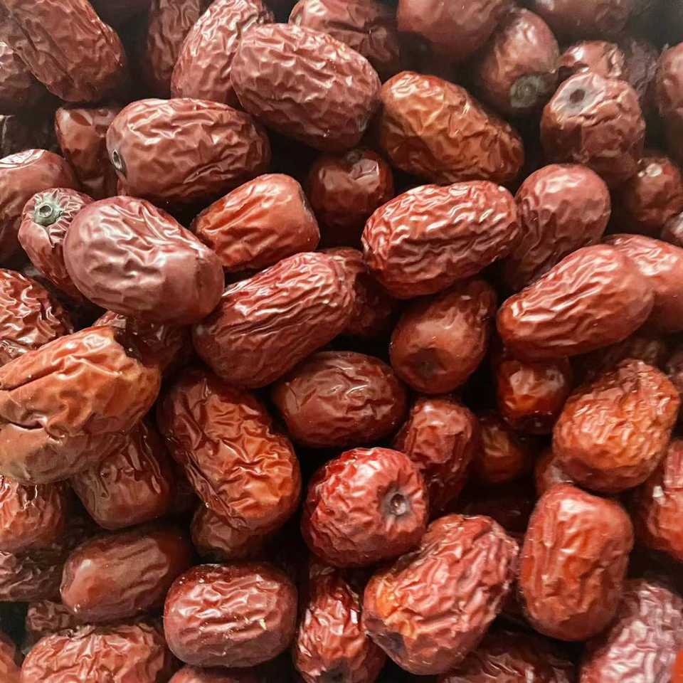 Spuntino di giuggiolo rosso biologico frutta secca con gusto agrodolce intero e confezionato sottovuoto di prugne conservato a fette alla rinfusa