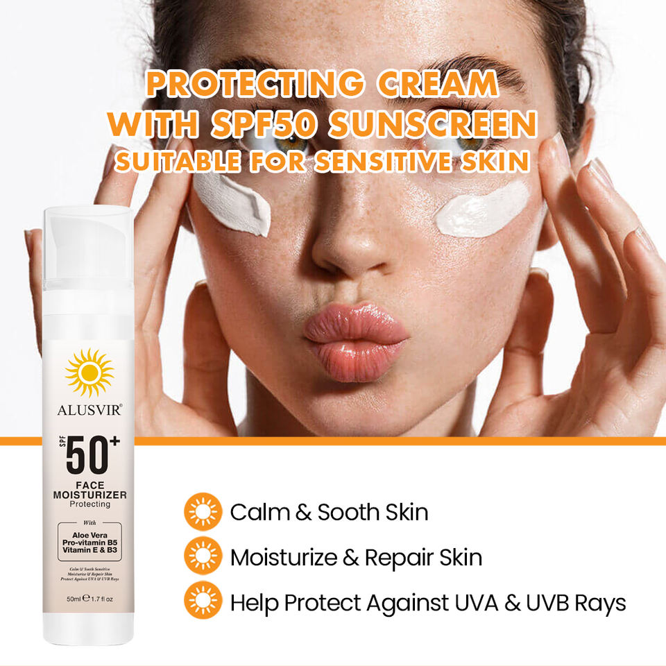 Organic Sensitive Skin Face Cream Sun Block Protecting Repair Soothing Brightening Daily Facial Cream Moisturizer With Spf 50