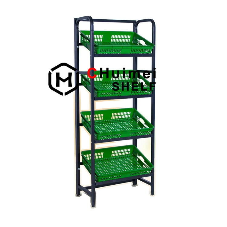 Organizza espositore in metallo macinato con cesto in plastica per frutta e verdura espositore in vendita