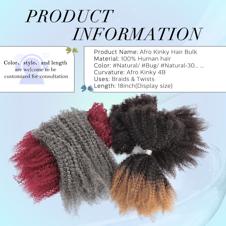 Orientfashion Affordable Afro Kinky 4B Real Human Hair Bulk Human Hair Auburn Color for Crochet Boho Braiding