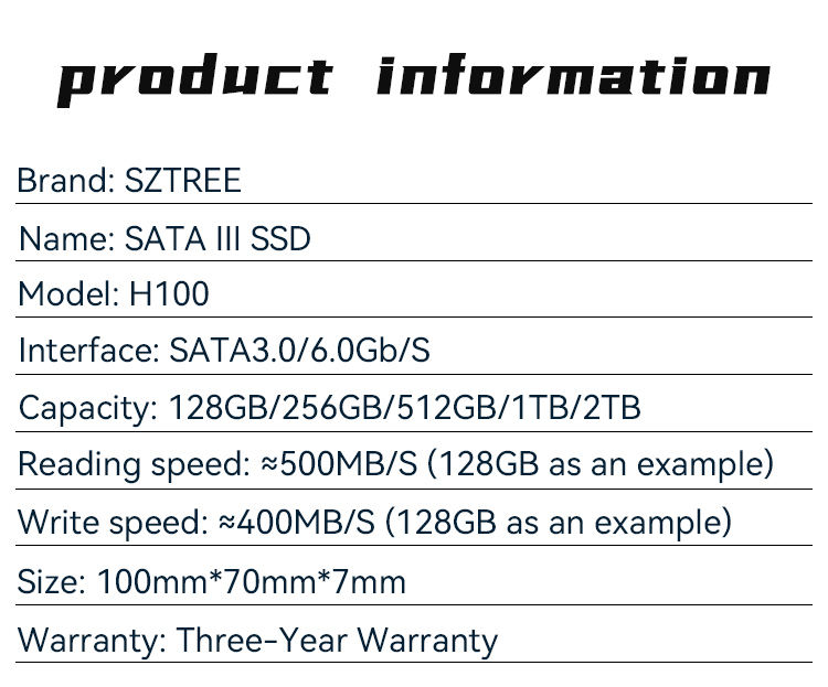 Interface:SATA 6 Gb/s, compatible with SATA 3 Gb/s & SATA 1.5 Gb/s interface